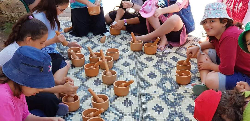 בפעילות חווייתית מלאת ריחות וטעמים, הילדים כותשים בעצמם אזוב מיובש, סומק ושומשום ומכינים תערובת זעתר אישית, ממש כמו בימי קדם.